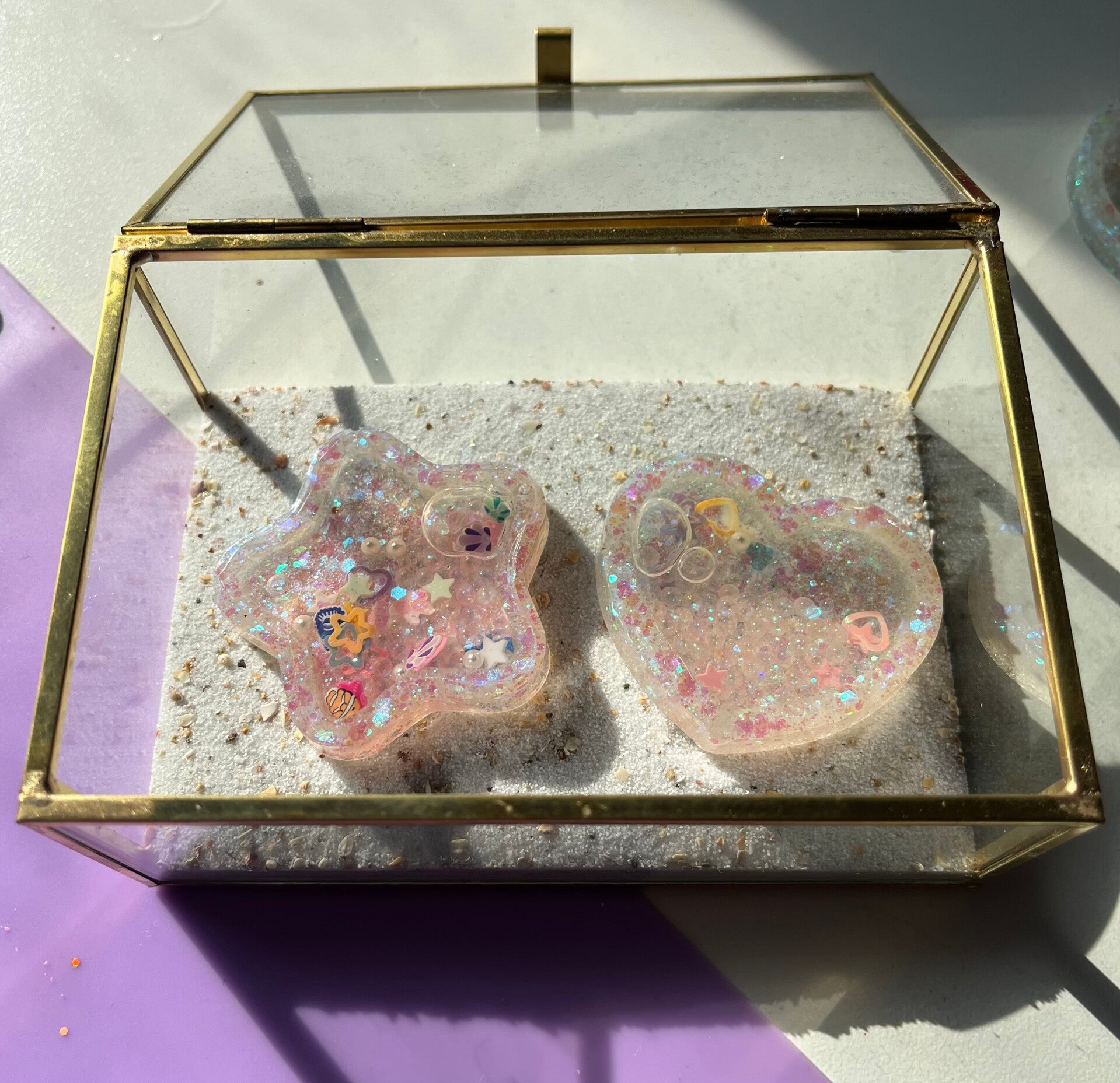 Een tag met een liquid kern in een kleur en vorm naar keuze. De foto is een voorbeeld. Graag eerst contact via DM over je wensen en de mogelijkheden. :)